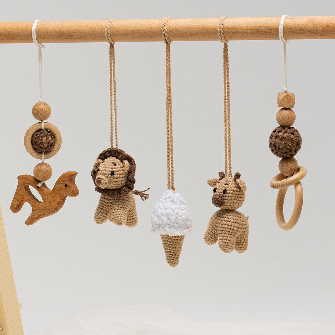 We understand that every baby is unique, and that's why we offer you the opportunity to customize your play gym with a selection of crocheted toys that resonate with your baby's interests and personality. From cute animals to whimsical shapes and characters, our range of options ensures your little one's playtime is filled with joy and wonder.