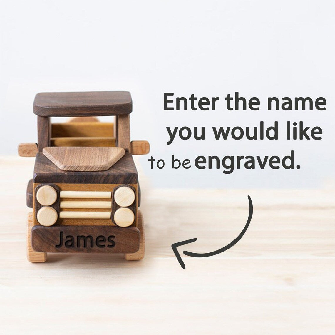 This vintage-style wood car makes a great classic toy for both girls and boys. It is handmade of safe natural materials and finished with walnut oil. The surface is smooth and won’t harm your children. It’s perfect for all ages and makes a wonderful gift. We can personalize it by engraving your child’s name across the toy. This environmentally safe toy is durable to last through the generations.