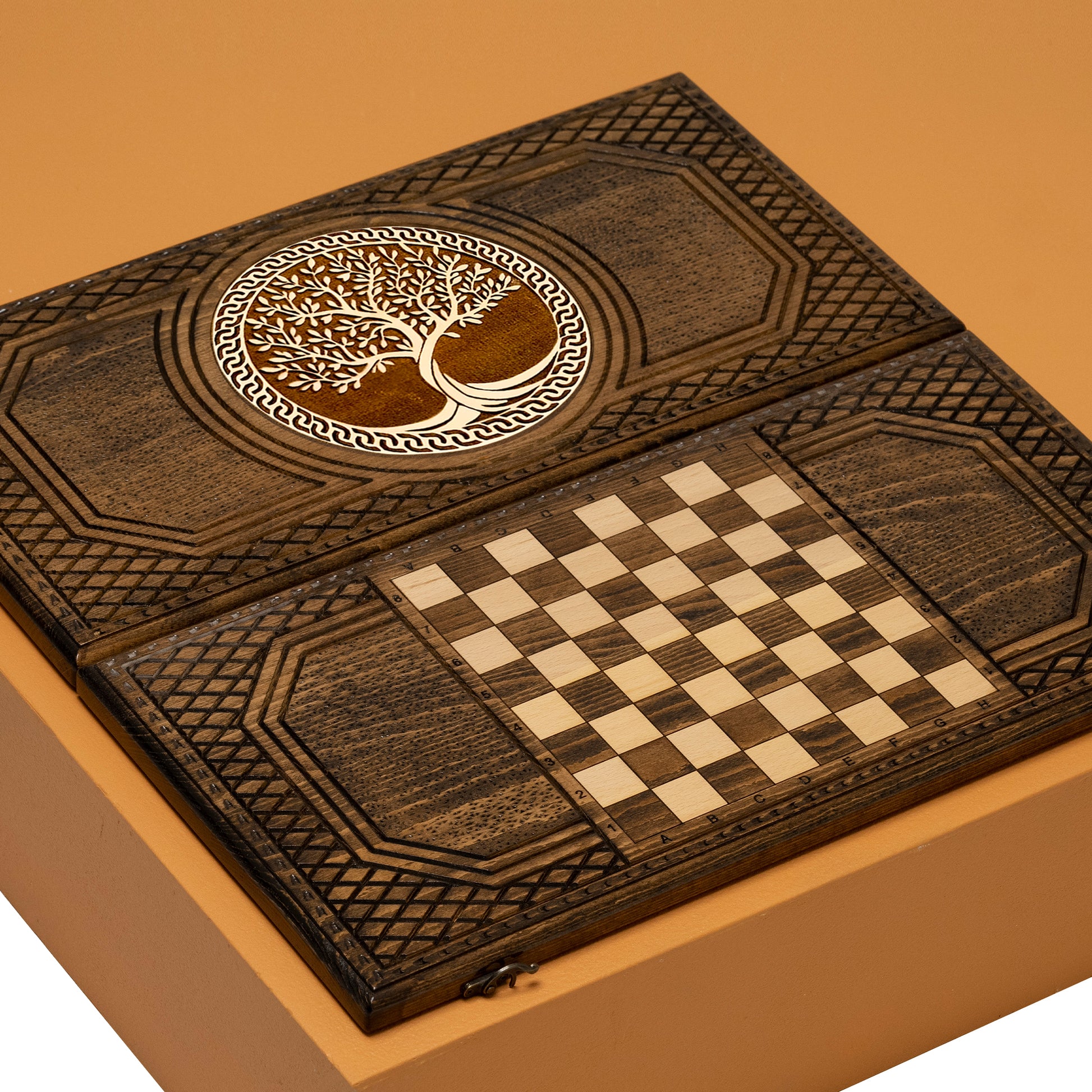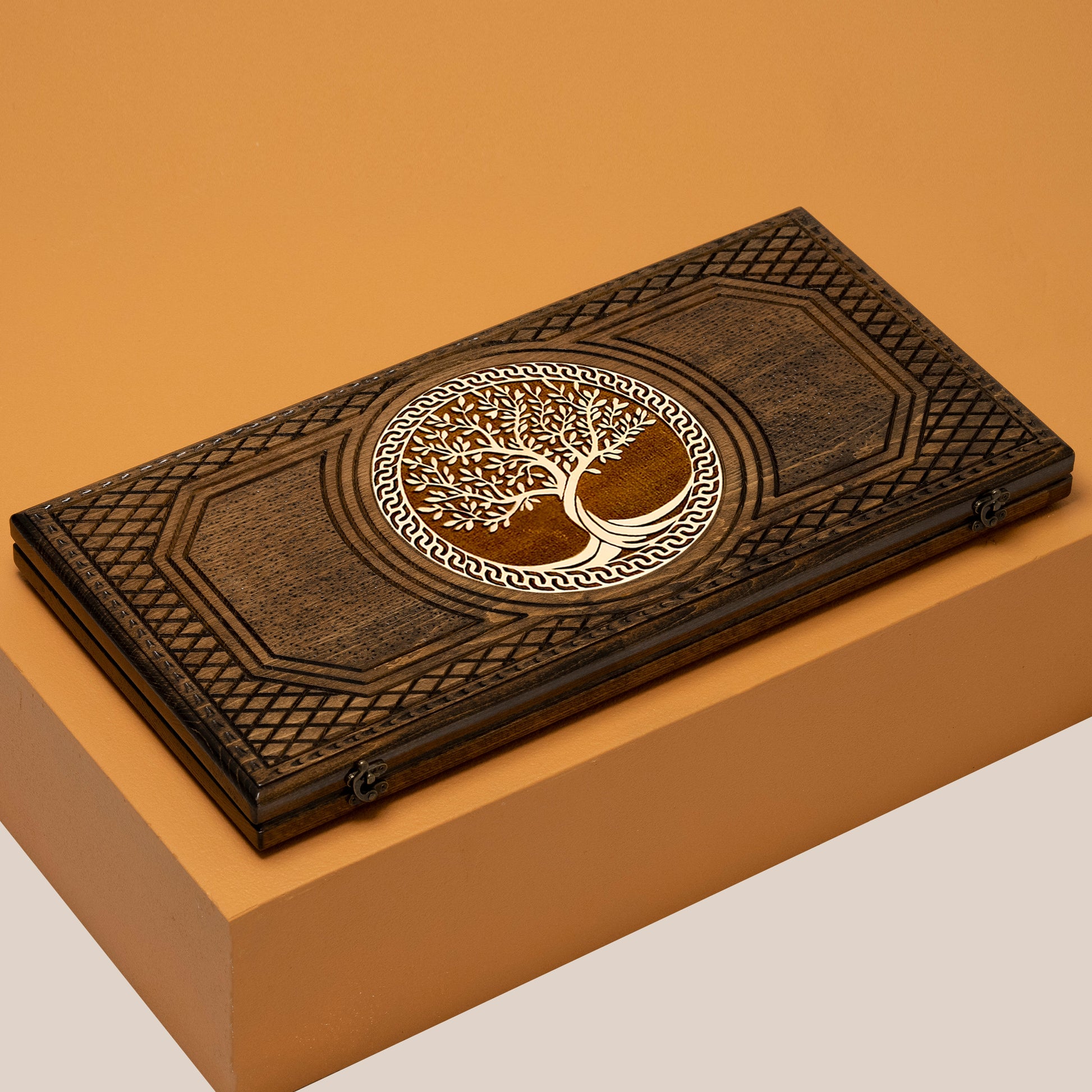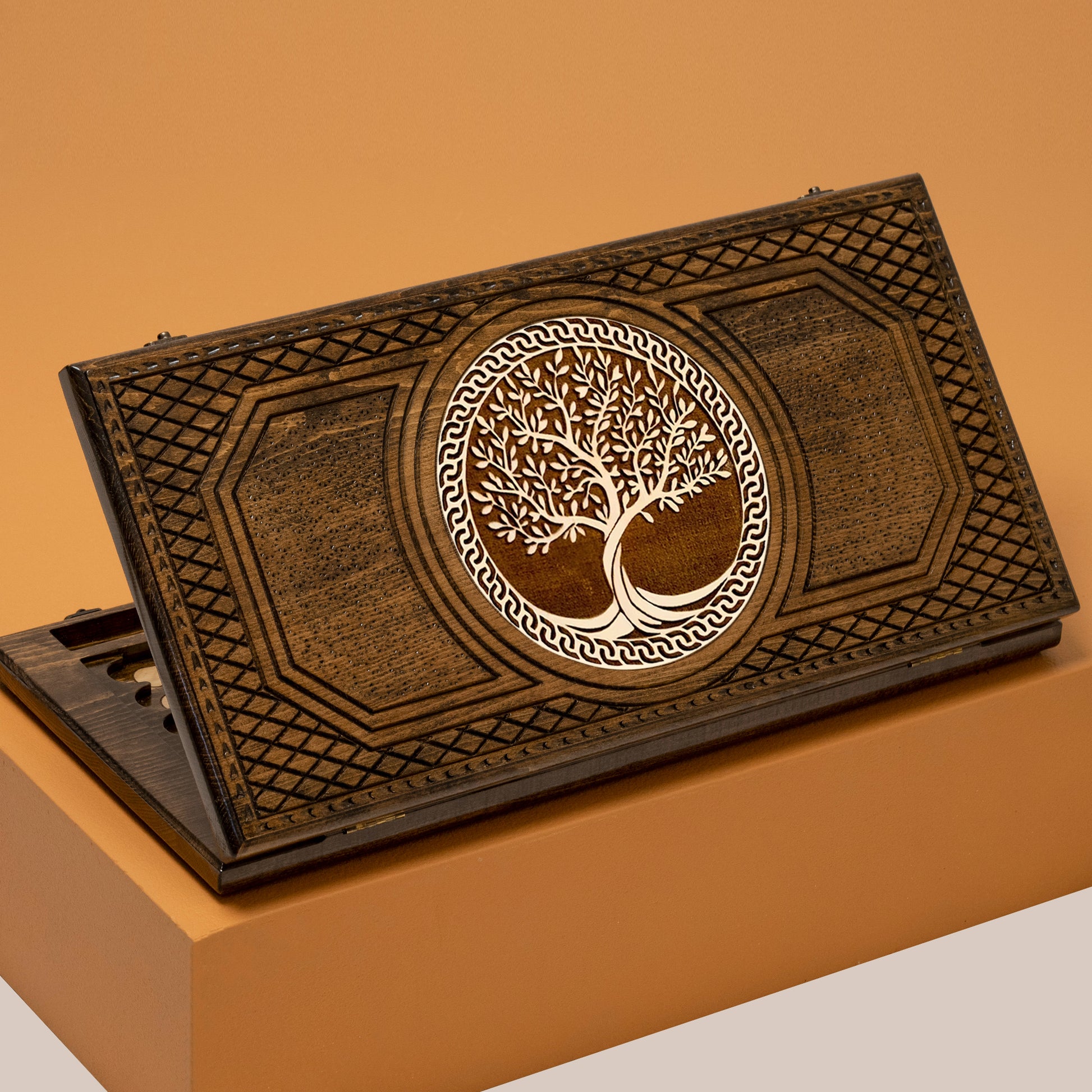 Introducing our exquisite Wooden Backgammon Set with an Engraved Tree of Life design. This set is not just a game but a meaningful piece of art. Crafted from high-quality wood, it features a beautifully detailed Tree of Life engraving that adds both style and symbolism to your gaming experience. Bring a touch of nature's beauty and wisdom to your game nights with this unique and captivating Backgammon Set. It's the perfect blend of functionality and aesthetics, making it an ideal gift or a cherished addition to your own collection.
