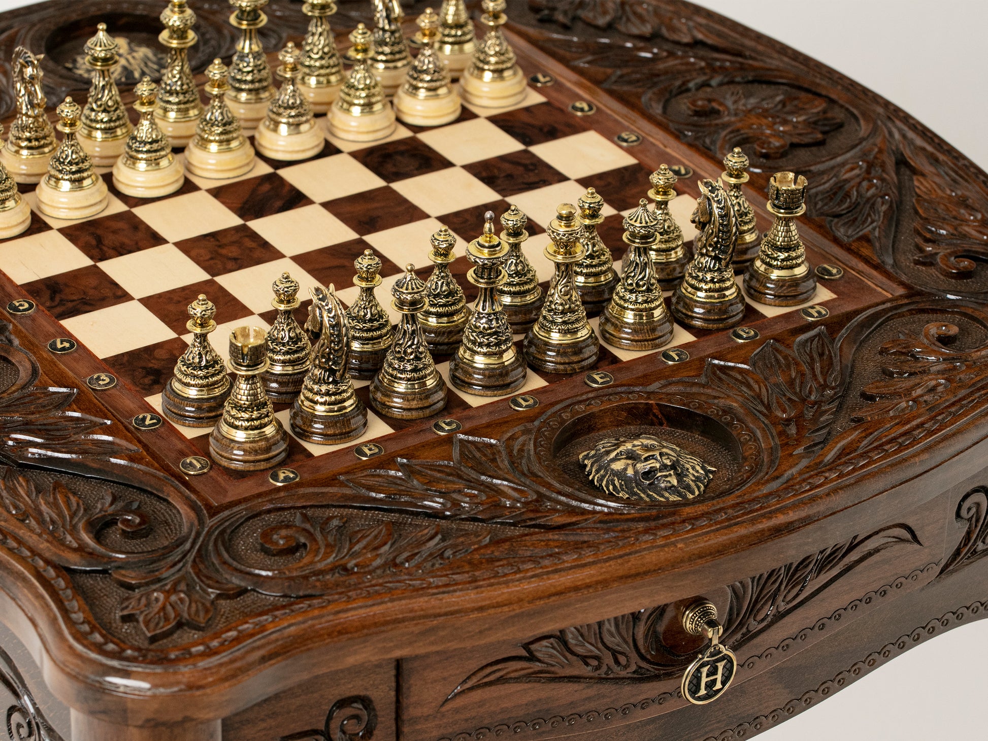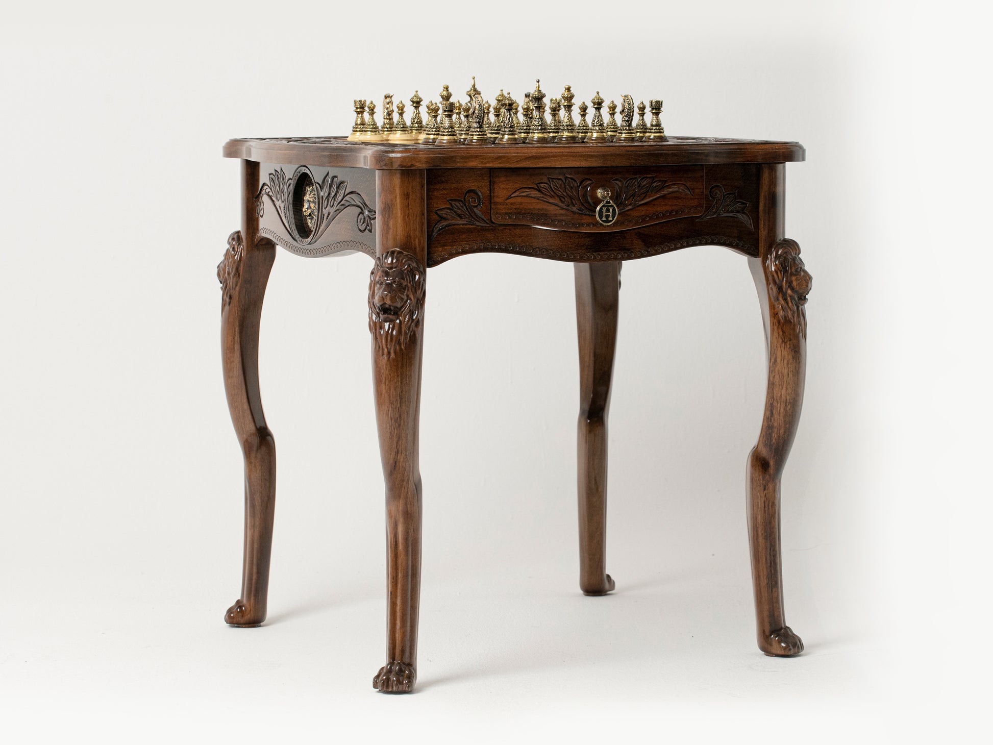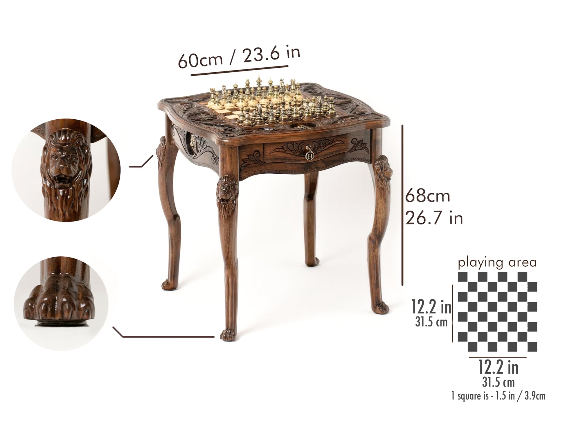 Beyond its gaming functionality, this wooden chess table serves as a statement piece in your home decor. The Lion Bronze details adds a touch of natural elegance to your living space, making it a centerpiece that sparks conversations and enhances the aesthetic of any room.