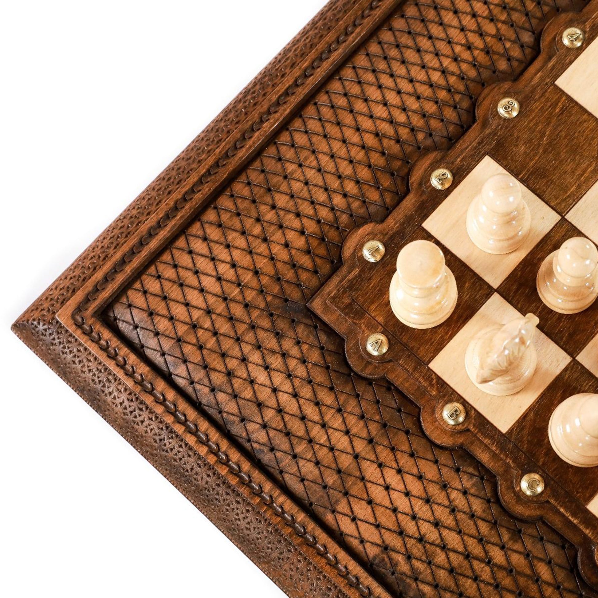 Beyond its gaming functionality, this wooden chess table serves as a statement piece in your home decor. The elegance Bronze details address Board is made from beech wood, Pieces are made from beech and walnut wood, Details are made from bronze a touch of natural elegance to your living space, making it a centerpiece that sparks conversations and enhances the aesthetic of any room.