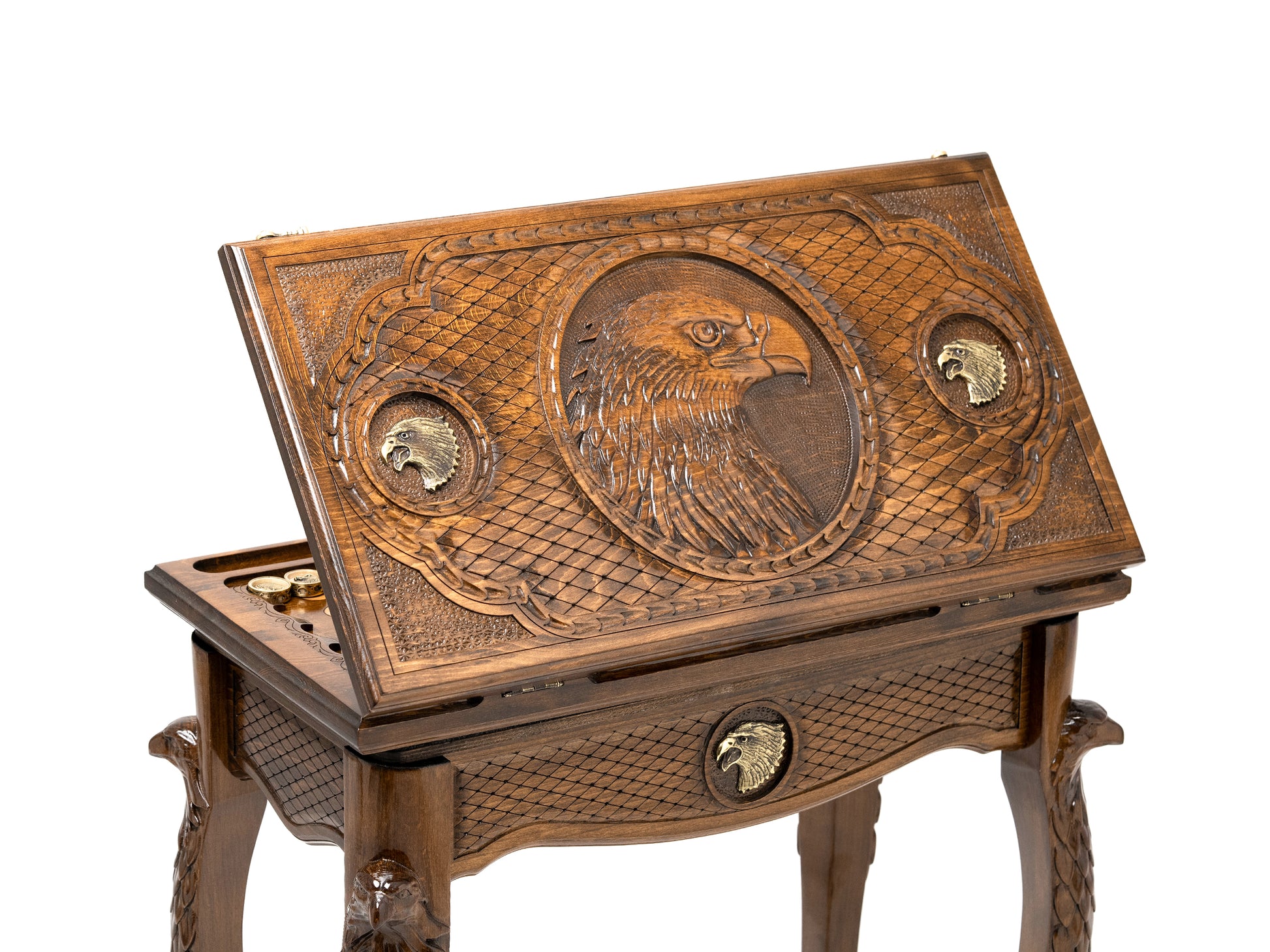 Our skilled artisans have painstakingly handcrafted this chess table to ensure it is not just a game board but a piece of art. The intricate Eagle design is precisely engraved onto the wood, adding an element of beauty and symbolism to your chess matches.