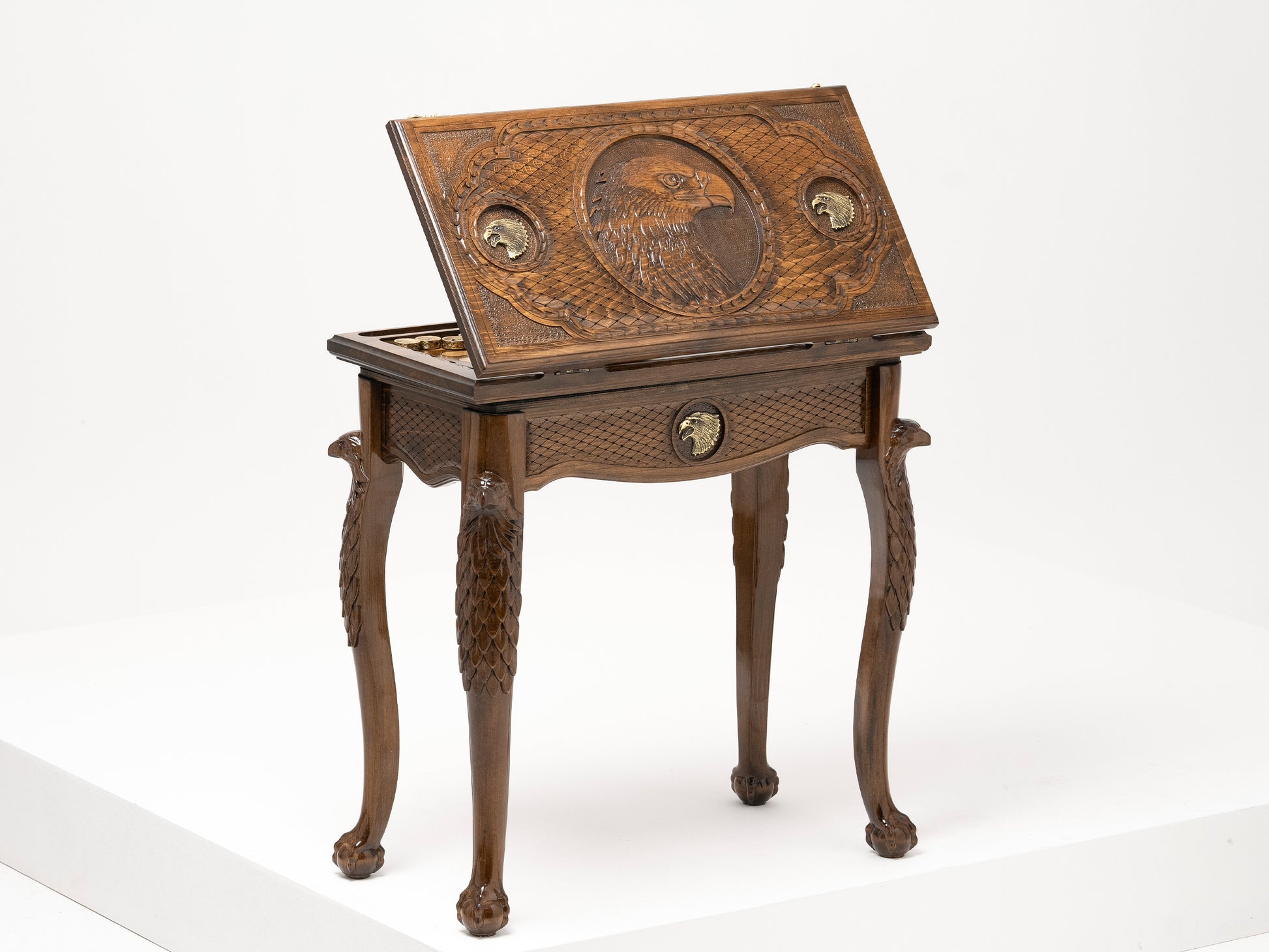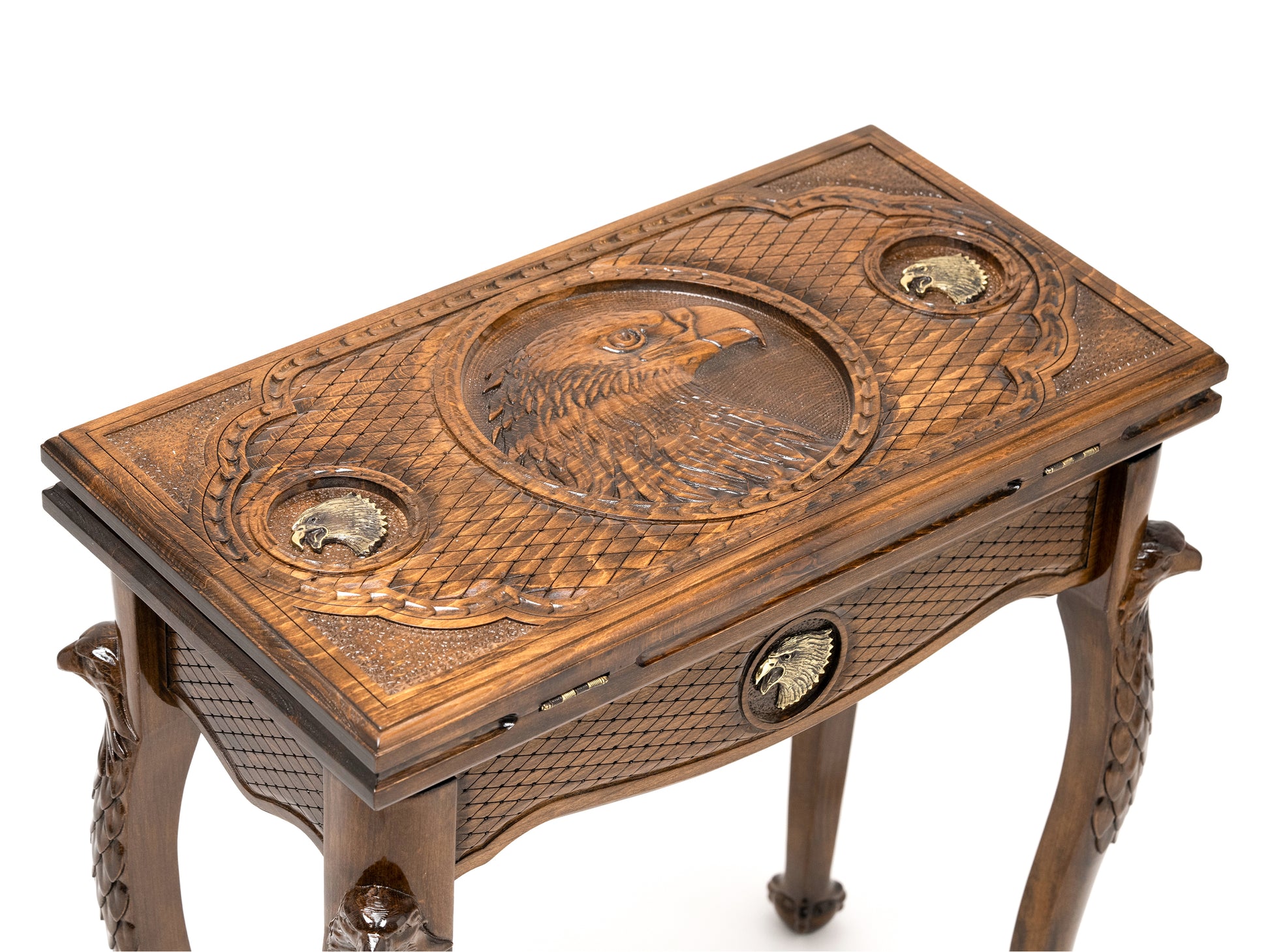 This Handcrafted Wooden Chess Table with an Engraved Eagle brings the timeless game of chess to a new level of elegance and sophistication. It's a captivating conversation starter and a functional work of art that enhances your living space while providing hours of strategic entertainment. Upgrade your chess experience and make a statement in your home with this exceptional piece. Order yours today!