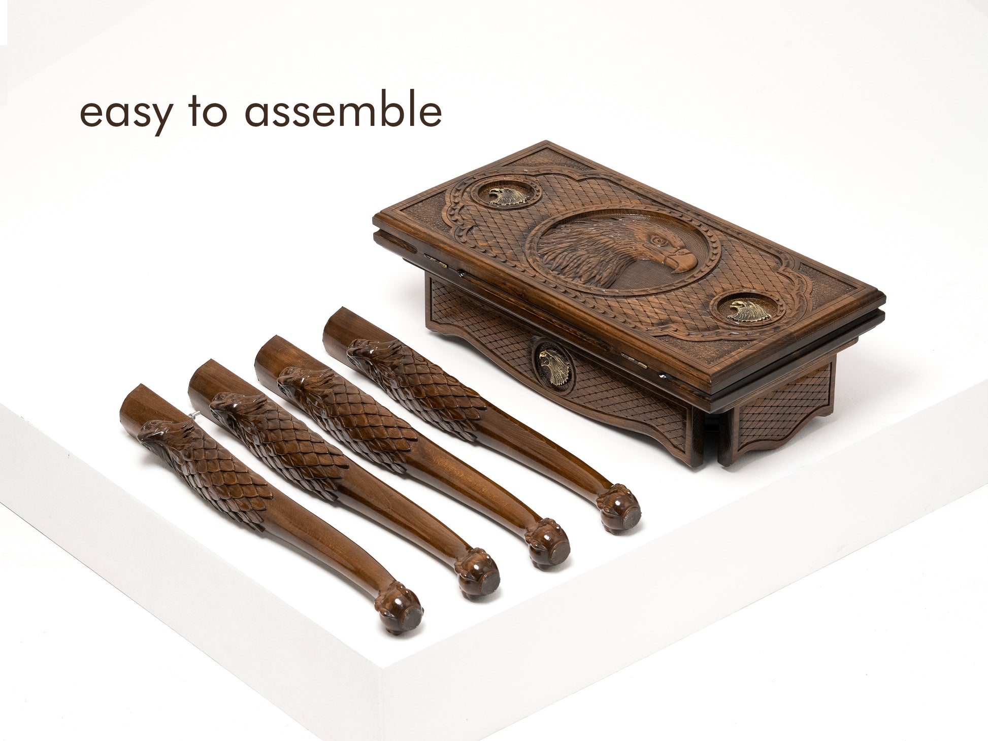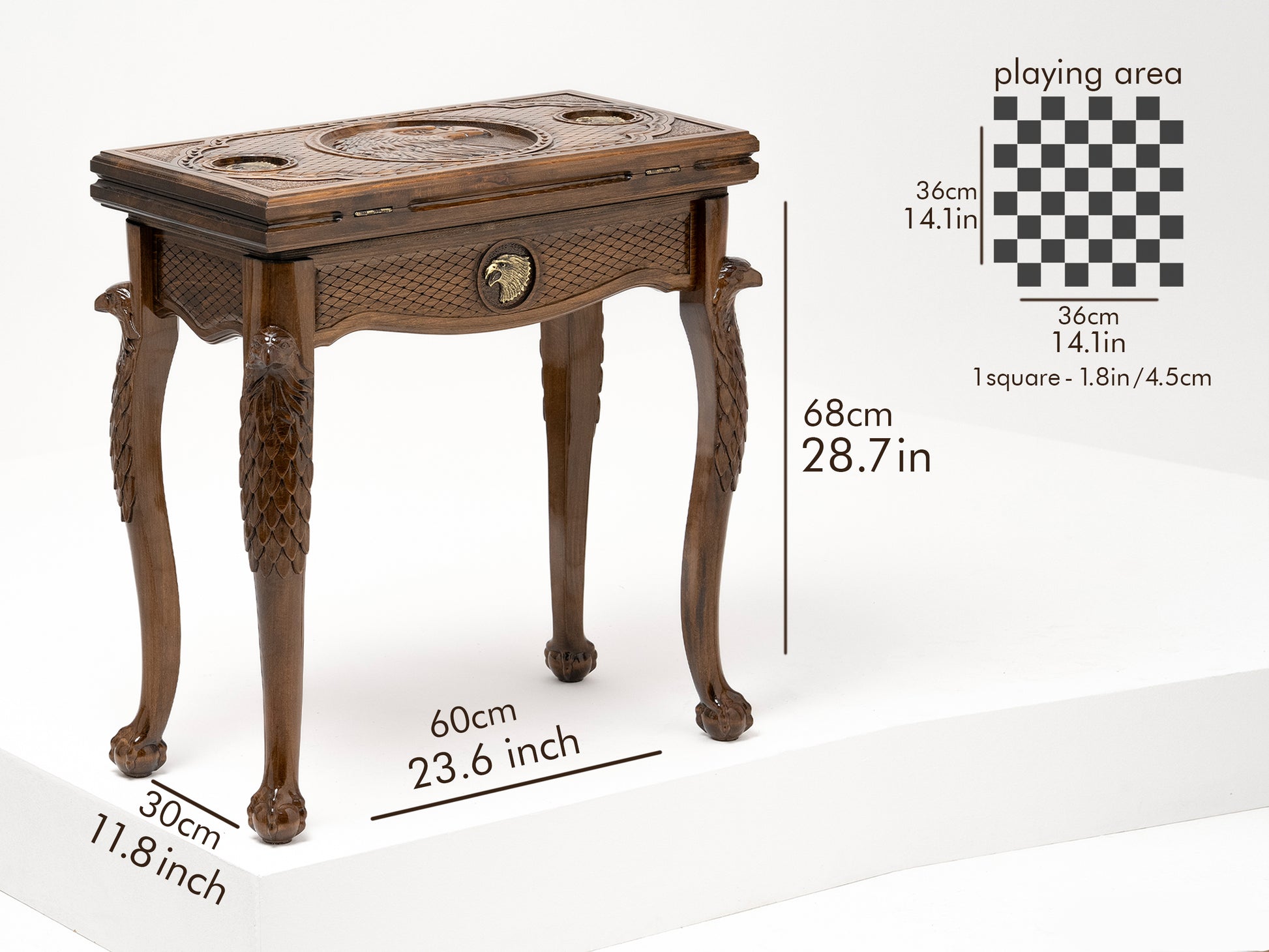 Beyond its gaming functionality, this wooden chess table serves as a statement piece in your home decor. The Eagle engraving adds a touch of natural elegance to your living space, making it a centerpiece that sparks conversations and enhances the aesthetic of any room.