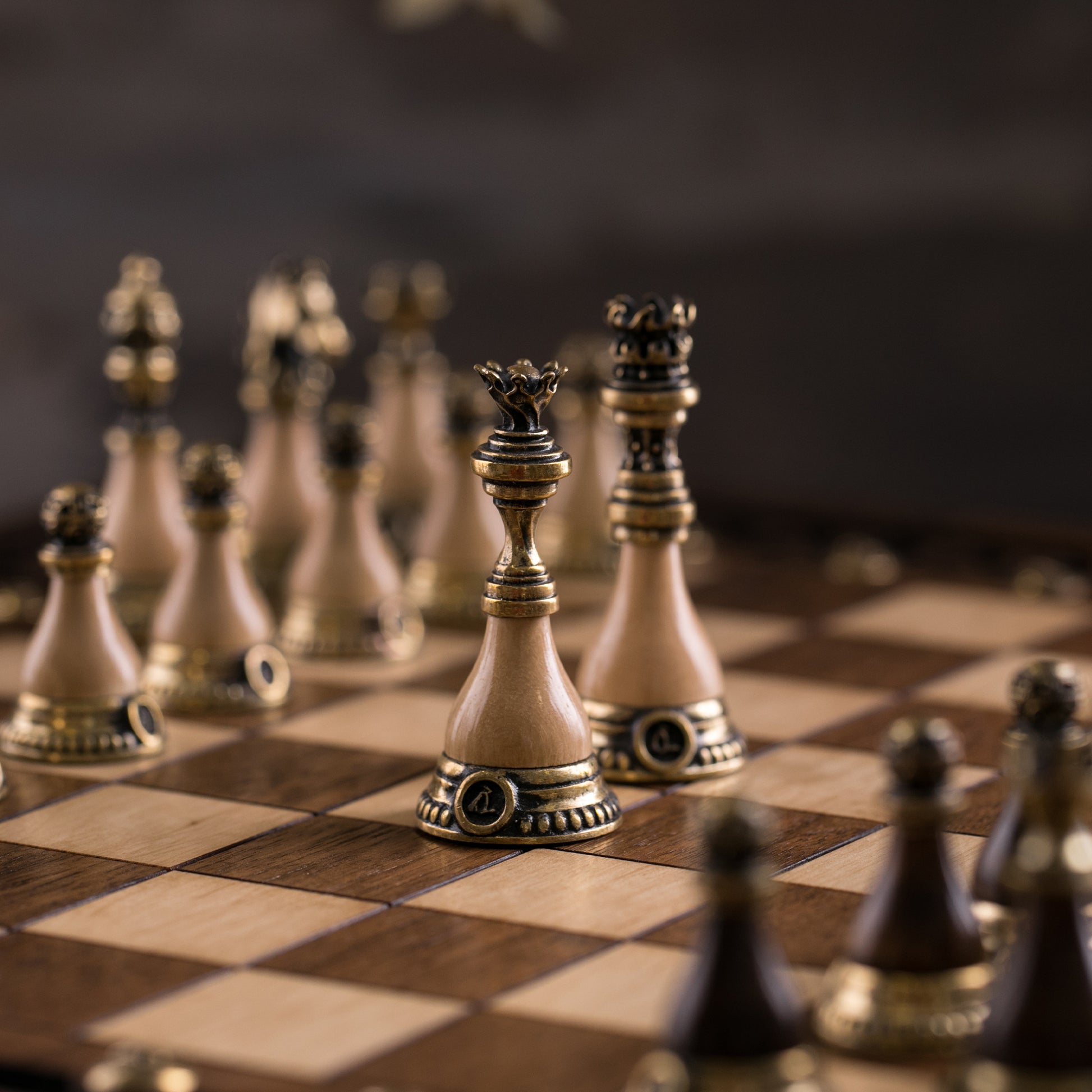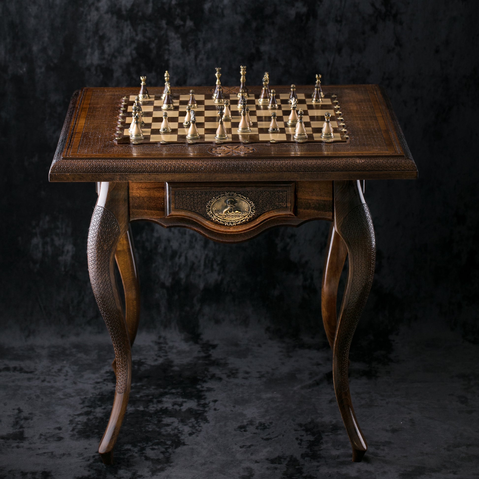 Beyond its gaming functionality, this wooden chess table serves as a statement piece in your home decor. The elegance Bronze details address Board is made from beech wood, Pieces are made from beech and walnut wood, Details are made from bronze a touch of natural elegance to your living space, making it a centerpiece that sparks conversations and enhances the aesthetic of any room.