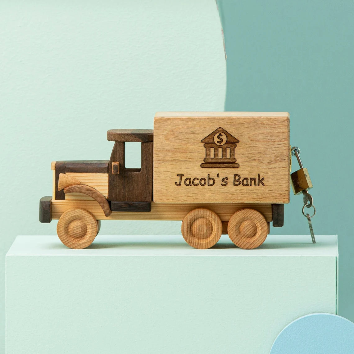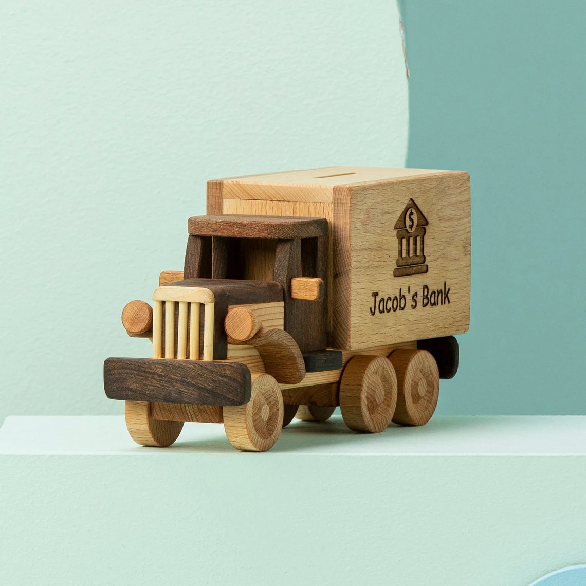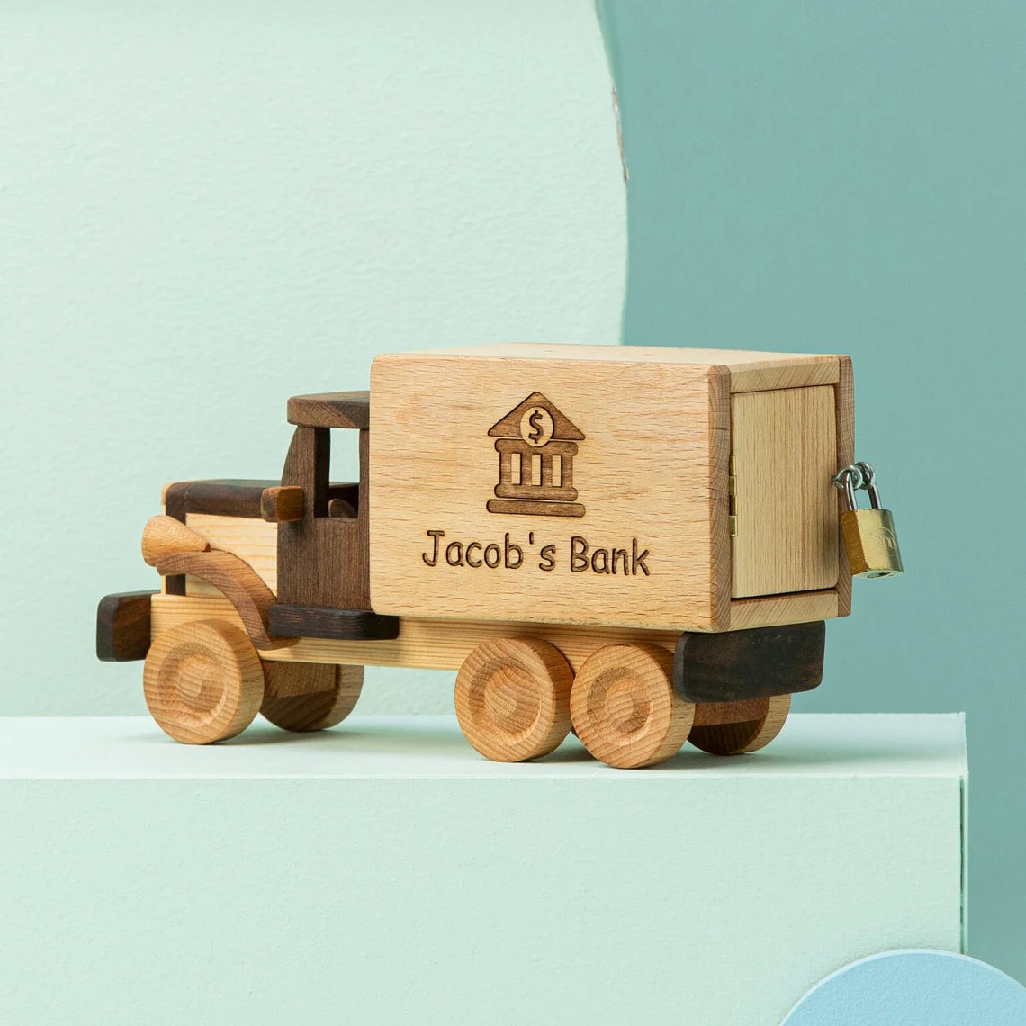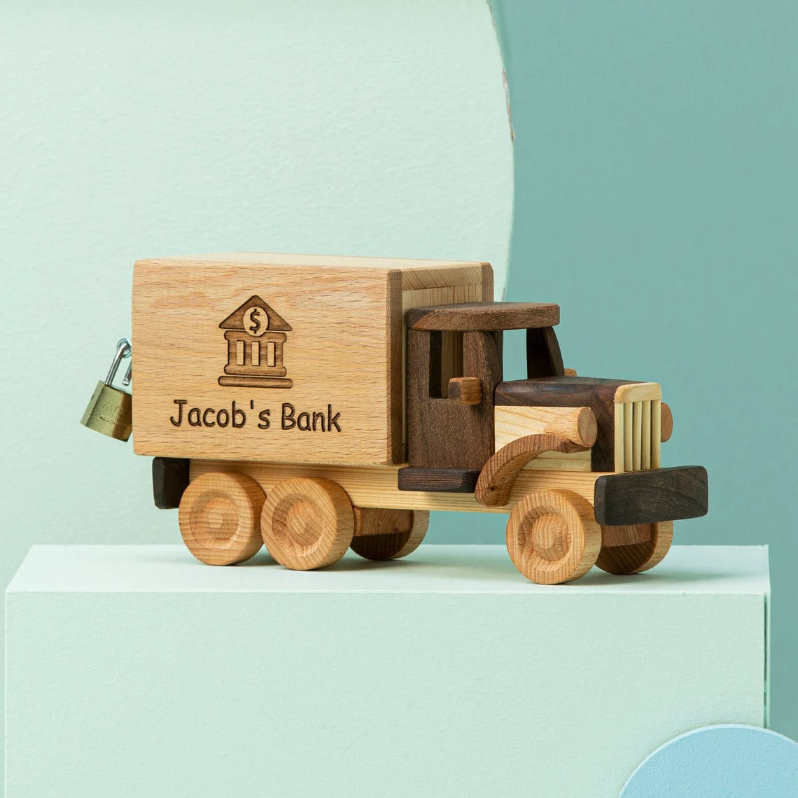 This wood toy truck is safe for all ages. It is unpainted, finished with safe walnut oil with a smooth surface. The hinged back lets your little one play with it like a dump truck or farm truck and lift up the back. Have it engraved with your boy’s or girl’s name to make it extra special as a gift.
