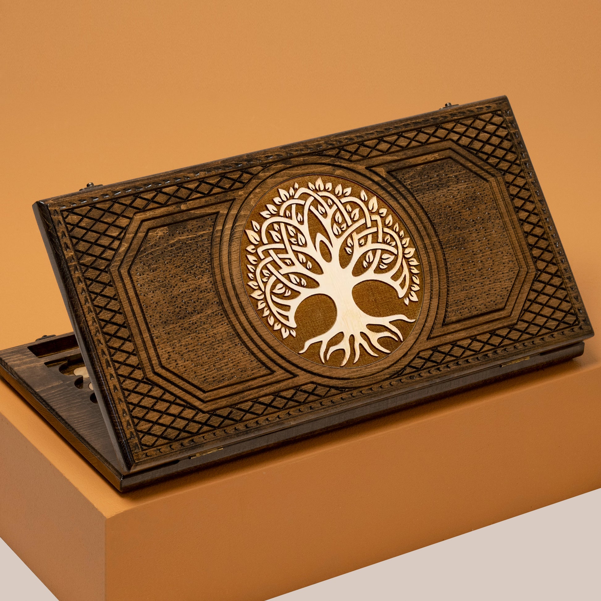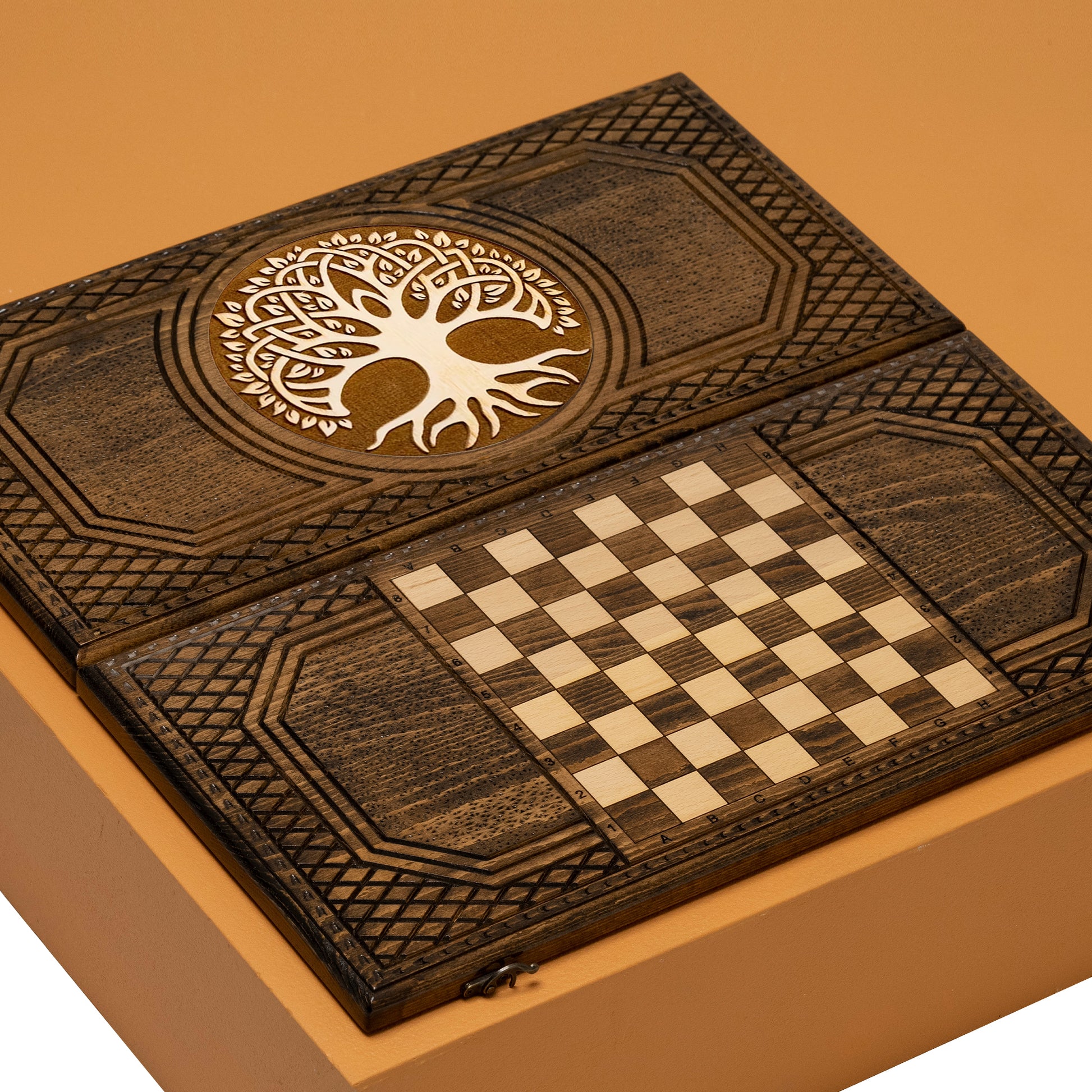 Introducing our exquisite Wooden Backgammon Set with an Engraved Tree of Life design. This set is not just a game but a meaningful piece of art. Crafted from high-quality wood, it features a beautifully detailed Tree of Life engraving that adds both style and symbolism to your gaming experience. Bring a touch of nature's beauty and wisdom to your game nights with this unique and captivating Backgammon Set. It's the perfect blend of functionality and aesthetics, making it an ideal gift or a cherished addition to your own collection.