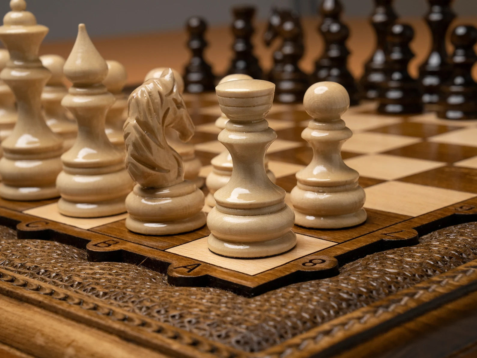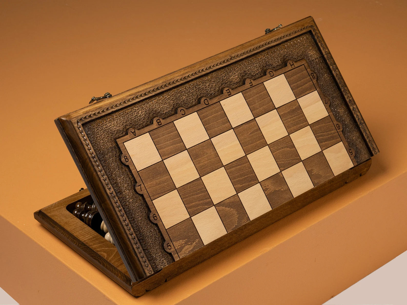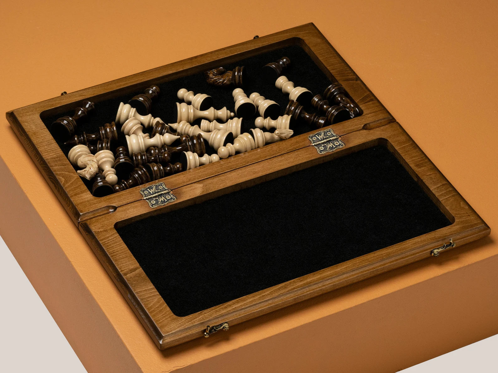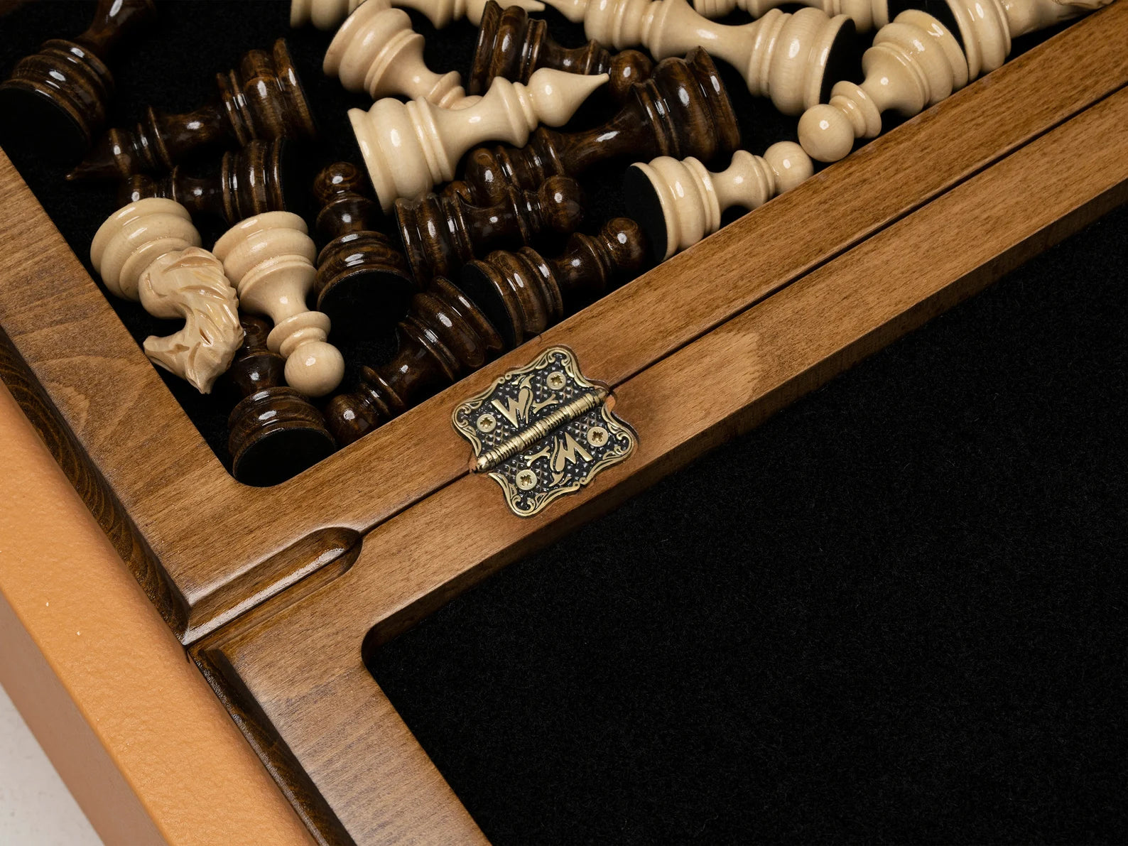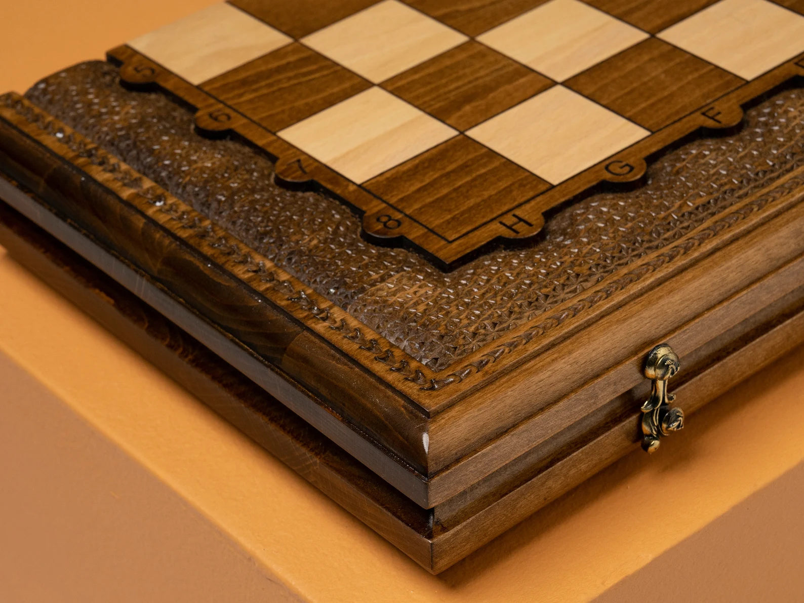 The chessboard is also crafted by hand, using the finest materials to ensure durability and longevity. The board is designed with a beautiful, natural finish that highlights the unique grain patterns of the wood, making it a beautiful display piece even when not in use.