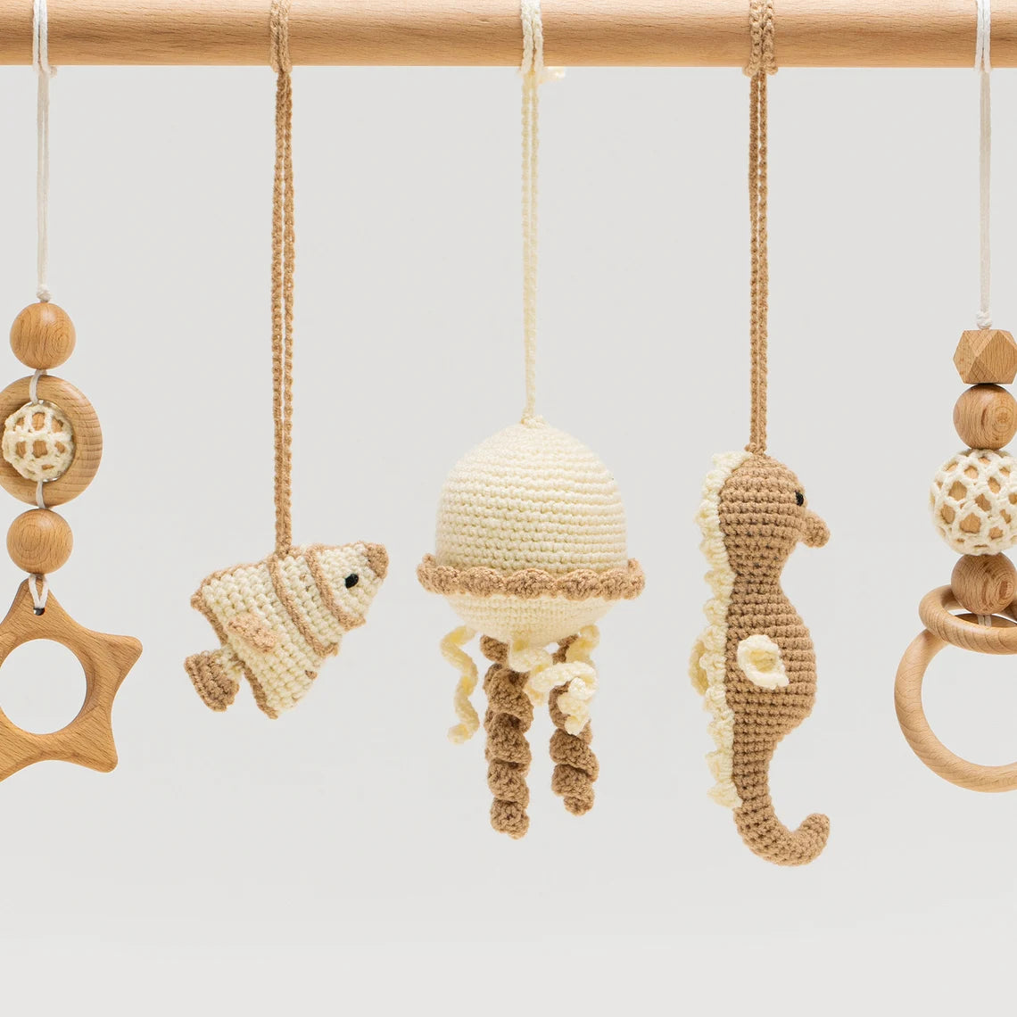 Dive into the wonders of the ocean with our Play Gym for Babies featuring Crocheted Sea Theme Toys! Crafted for your little explorer, this playful gym invites your baby to explore the underwater world. Add a touch of marine magic to your nursery with this delightful play gym, designed to make every playtime an aquatic adventure.