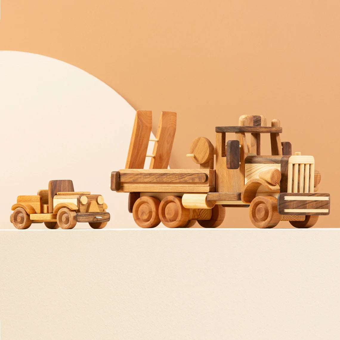 When not in use, the Wooden Large Tow Truck and car toy make for charming room decor pieces, adding a touch of classic appeal to any space. This set is a thoughtful gift that combines entertainment, personalization, and environmental responsibility.