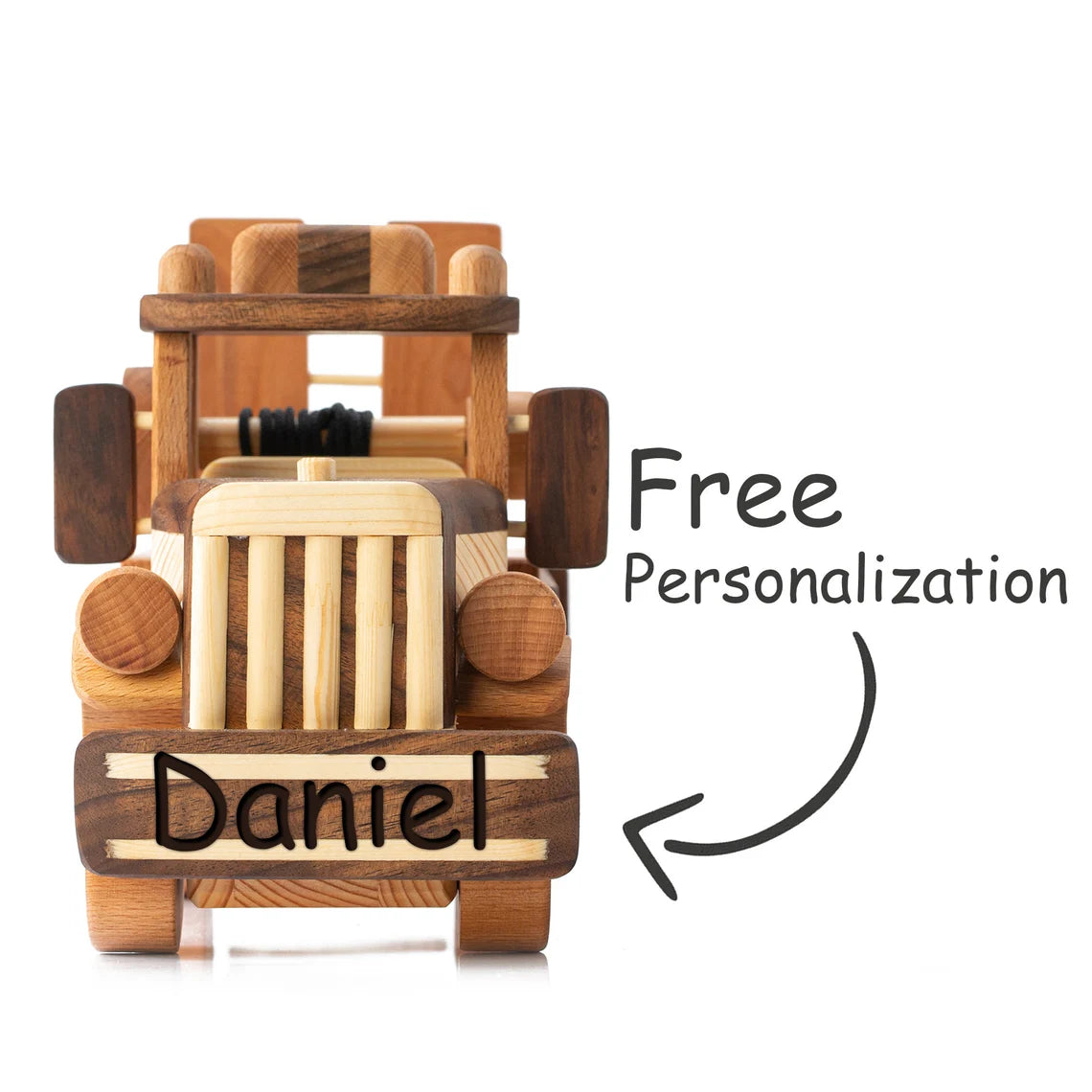 What sets this set apart is the personalization element. Your child's name can be elegantly engraved on the side of the tow truck, transforming it into a one-of-a-kind treasure that sparks creativity and individuality. Imagine the joy on their face as they embark on imaginative rescue missions and transportation adventures.