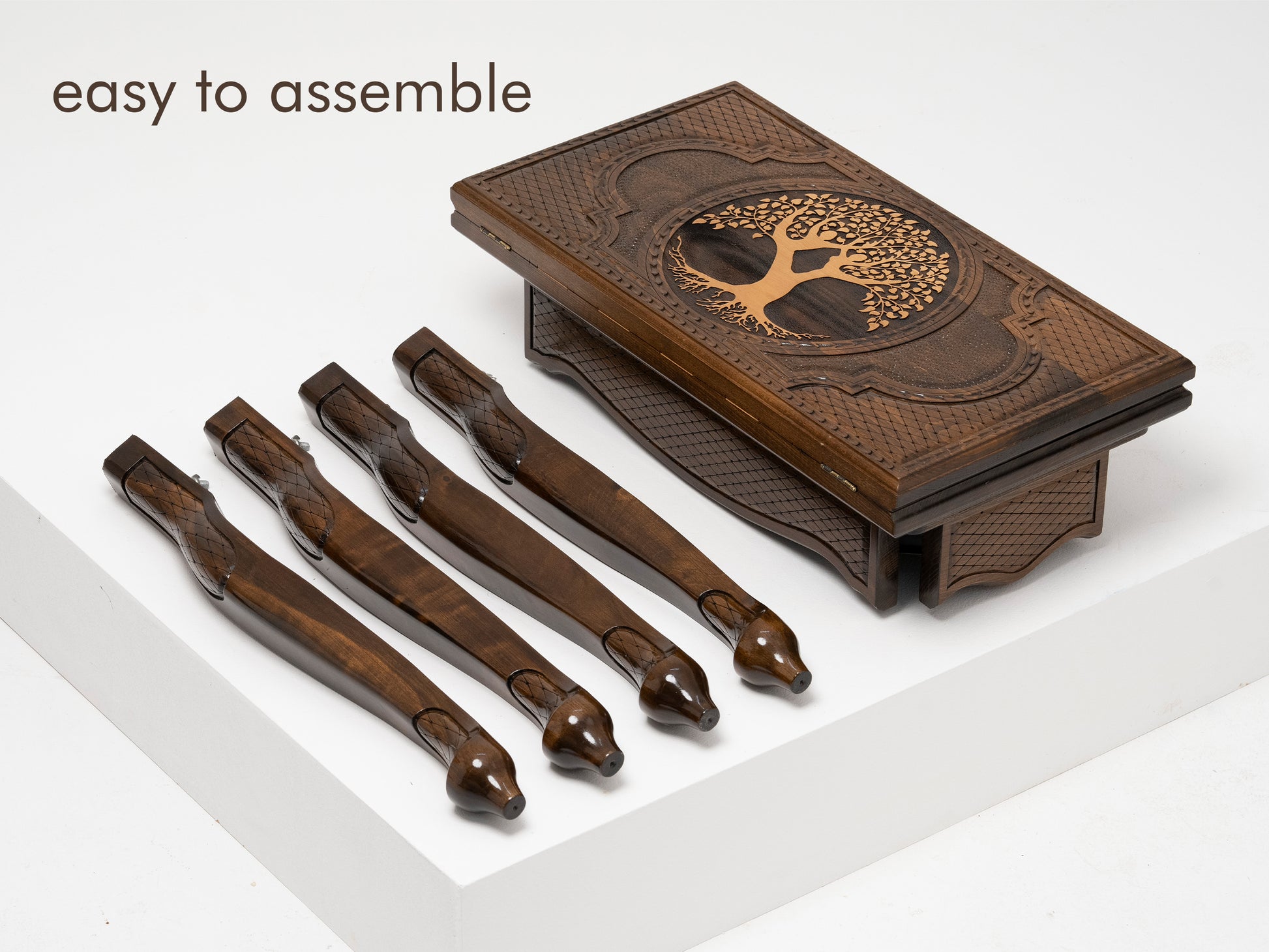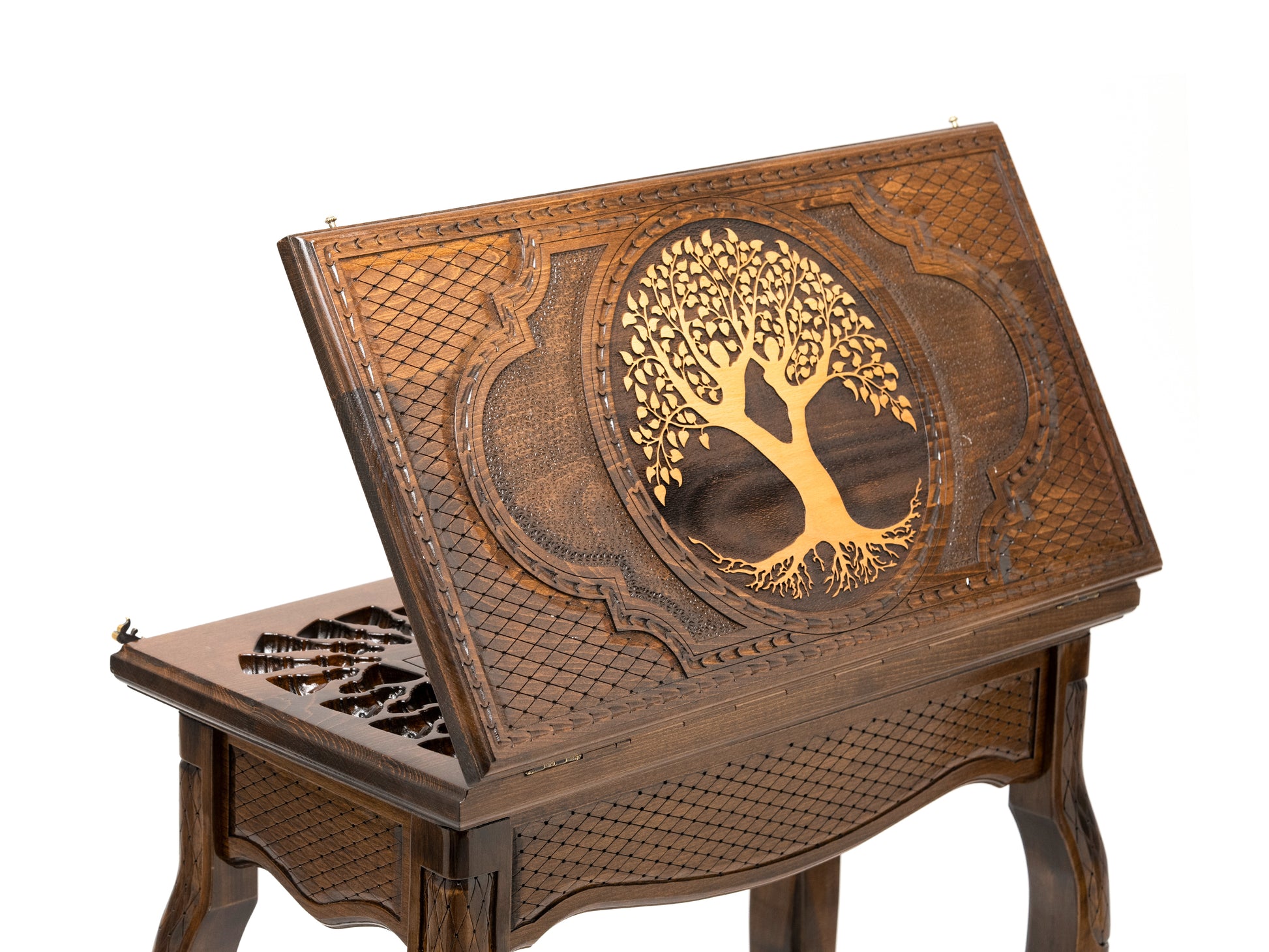 Our skilled artisans have painstakingly handcrafted this chess table to ensure it is not just a game board but a piece of art. The intricate Tree of Life design is precisely engraved onto the wood, adding an element of beauty and symbolism to your chess matches.
