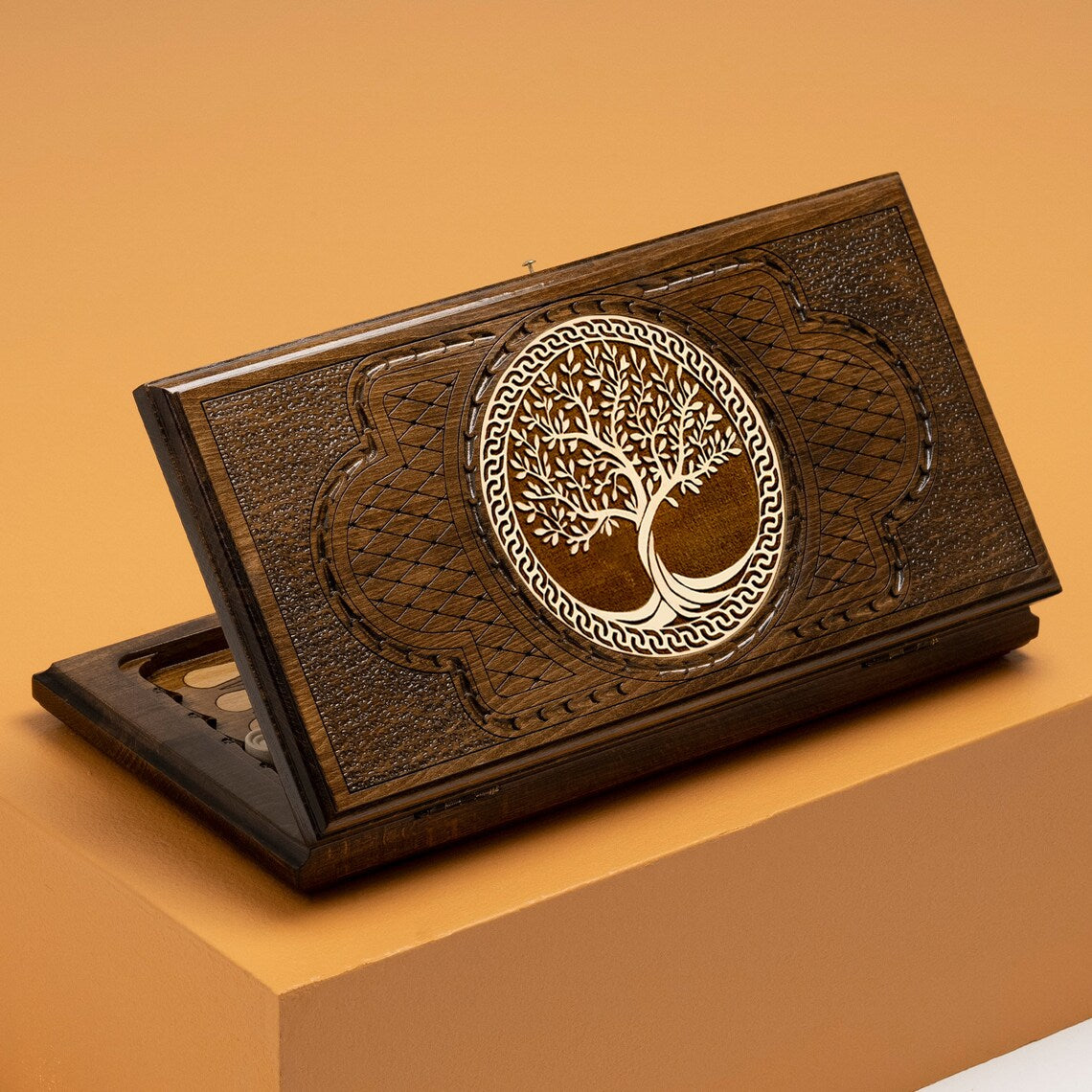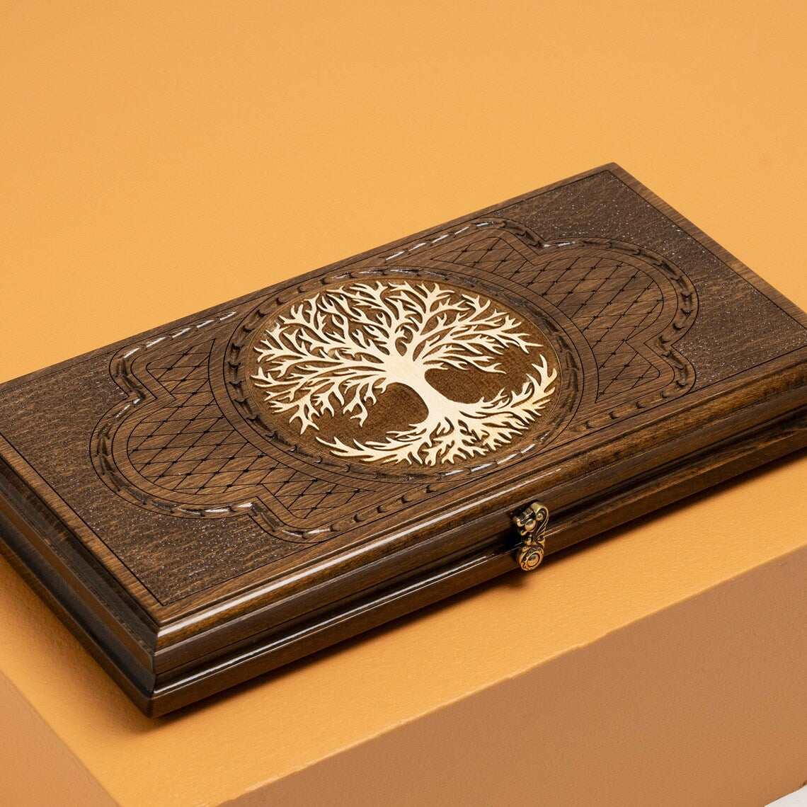Introducing our exquisite Wooden Backgammon Set with an Engraved Tree of Life design. This set is not just a game but a meaningful piece of art. Crafted from high-quality wood, it features a beautifully detailed Tree of Life engraving that adds both style and symbolism to your gaming experience. Bring a touch of nature's beauty and wisdom to your game nights with this unique and captivating Backgammon Set. It's the perfect blend of functionality and aesthetics, making it an ideal gift or a cherished addition to your own collection.