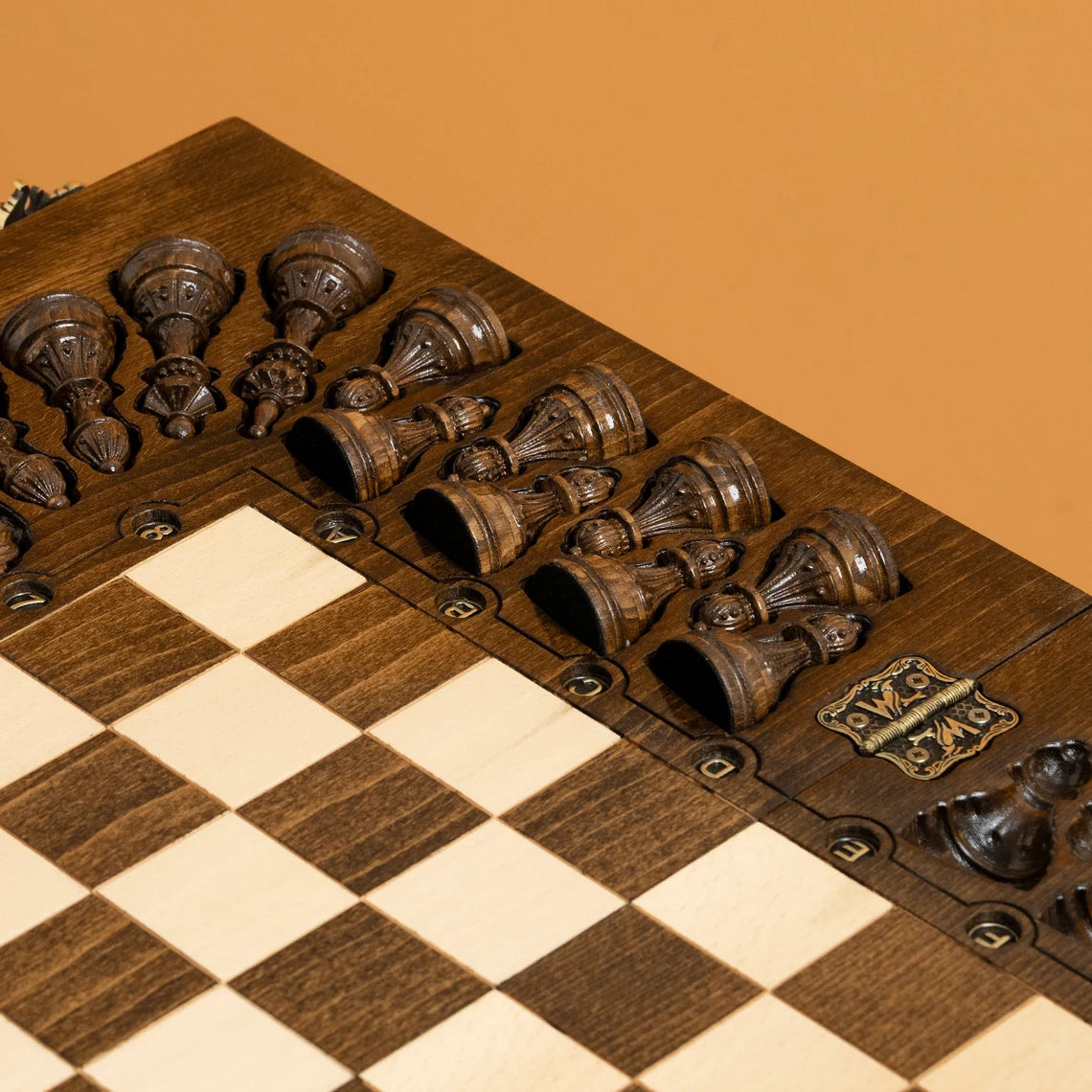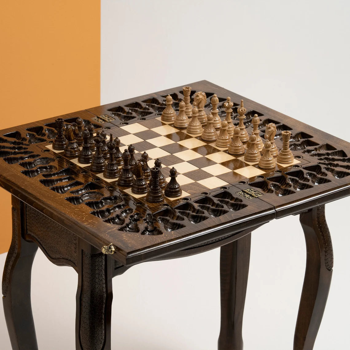 Bring sophistication and elegance to your chess matches with this exquisite chess table. Order yours today and experience the joy of playing on a work of art that's as beautiful as the game itself. Make every move count with our Wooden Chess Table with Engraved Ornaments, where craftsmanship meets strategy.