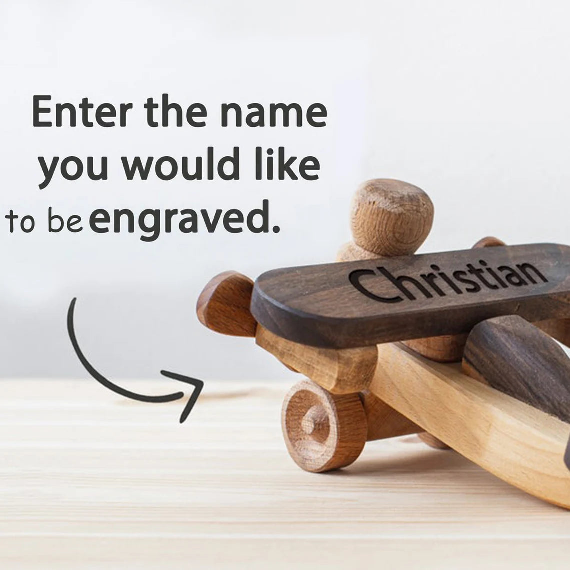 We can personalize it by engraving your kid's name on the toy (you can also request customization)