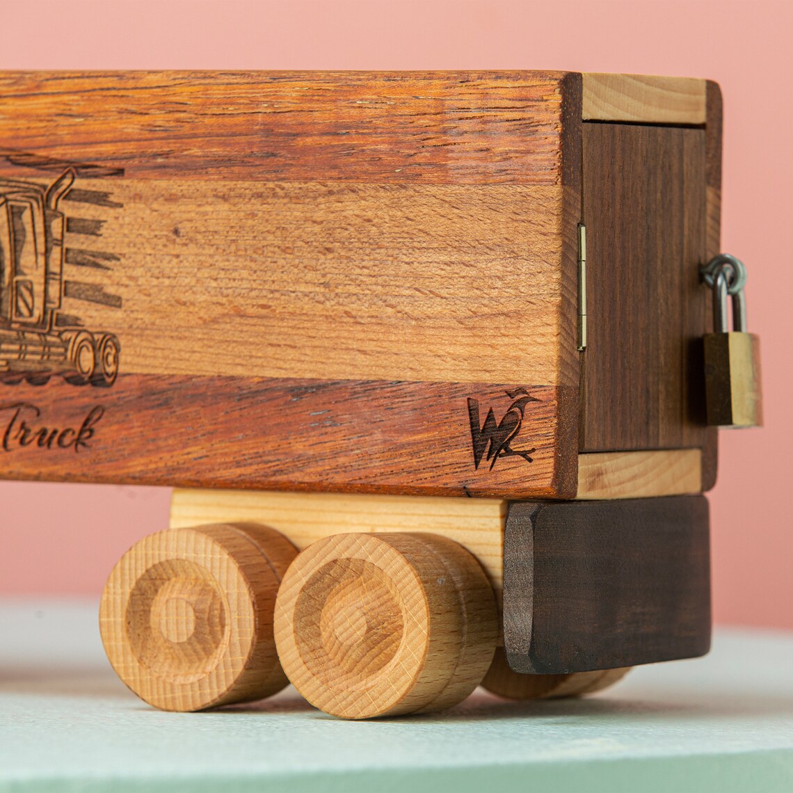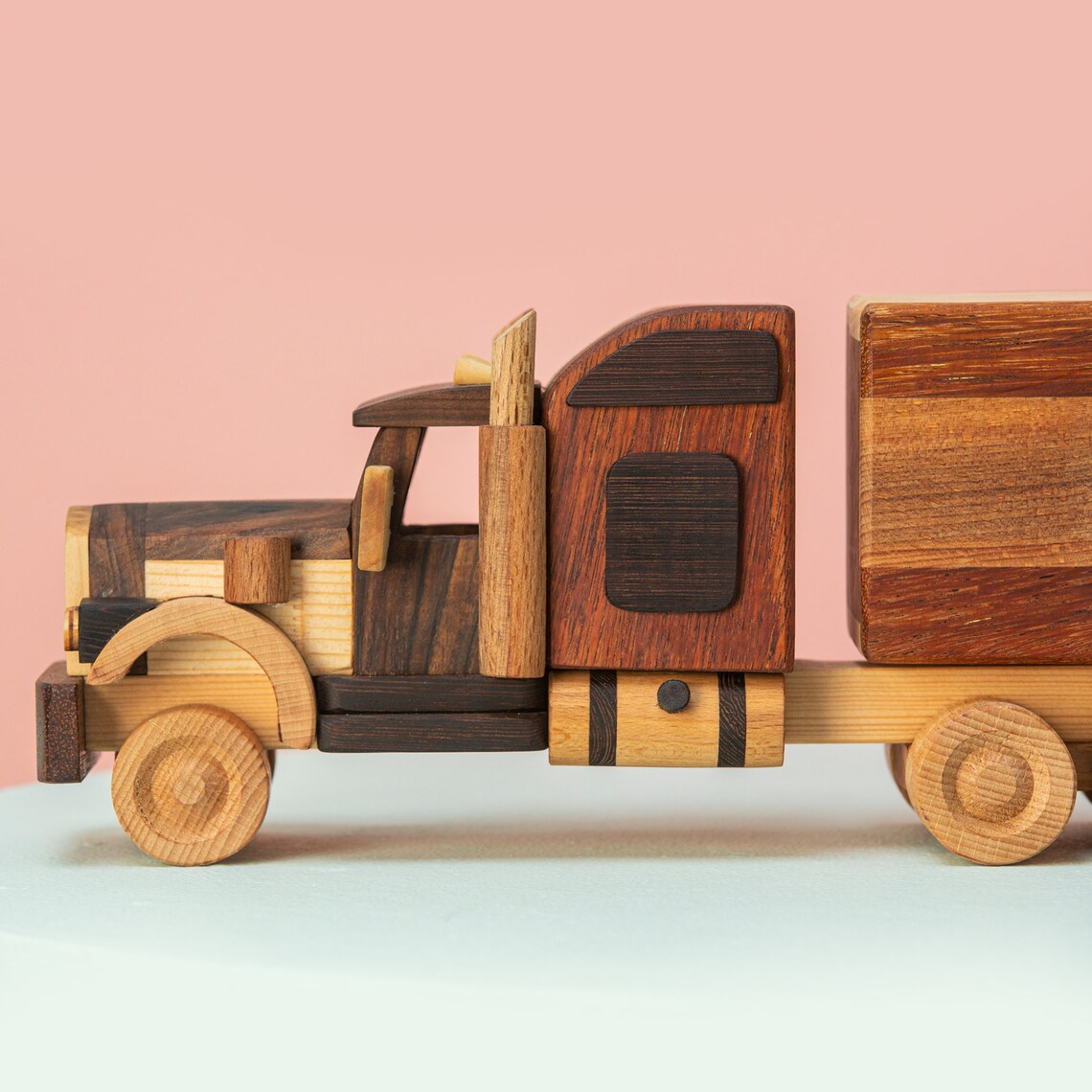Wooden Toy American Truck, this wooden truck toy is handcrafted of safe ecologically clean wood. It is sturdy to hold up to your child playing with it and can be handed down to the next generation.