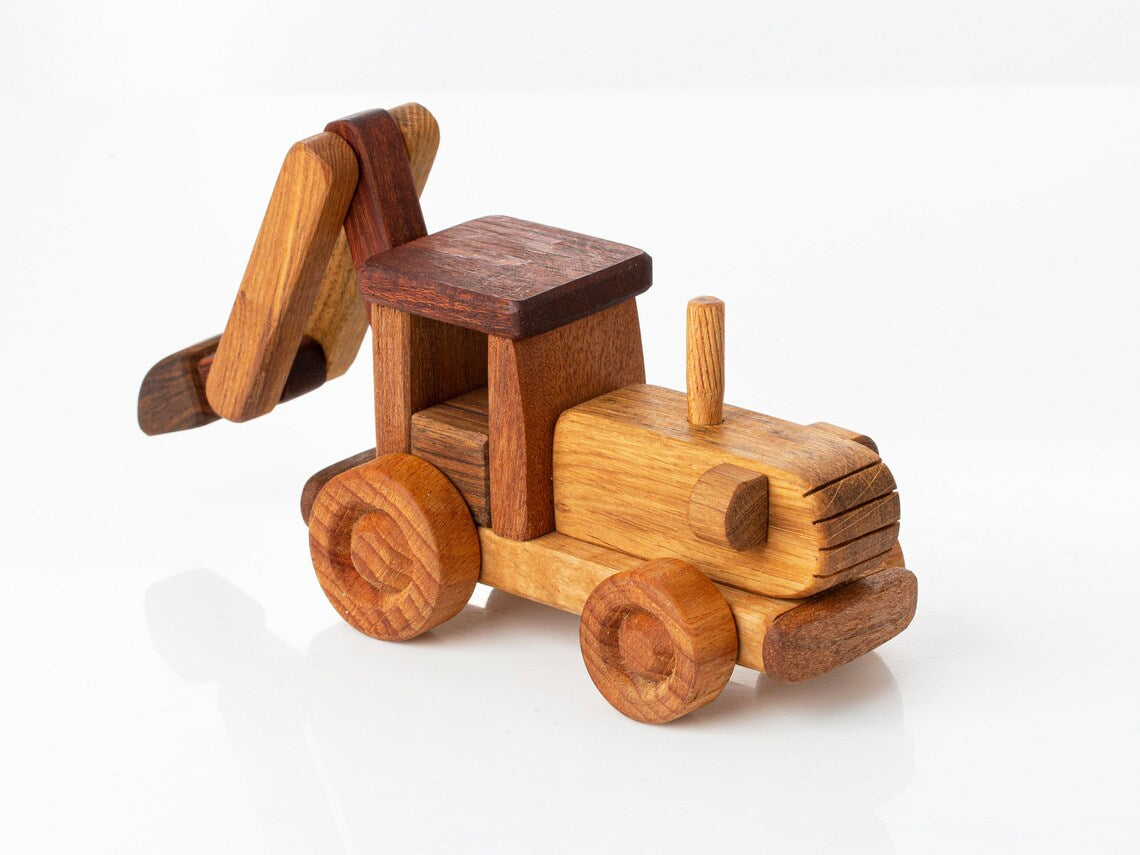 It is created by hand with ecologically clean 7 kinds of wood and safe walnut oil. The surface is nice and smooth. This unpainted tractor is durable to hold up to your children playing with it for many years. The back is hinged for realistic construction play. Choose to have it personalized with your kid’s name engraved on the toy. This environmentally friendly toy makes a great gift for any age child.